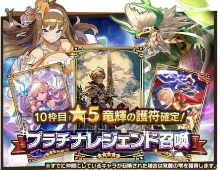 | ドラガリアフェス限定★5キャラ確定 プラチナレジェンド召喚 | 2019-09-27 | 2019-10-11 | 選択 |