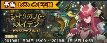 | シャドウ・オーバー・メイデン ピックアップ Part 2 | 2019-11-04 | 2019-11-16 | 選択 |