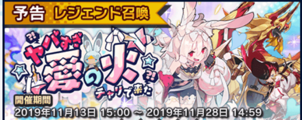 | ★5護符確定 プラチナレジェンド召喚 | 2018-11-25 | 2018-11-28 | 選択 |