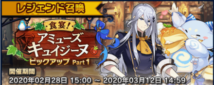 | (new)水属性★5キャラ「タイコウボウ(杖)」、(new)闇属性★4キャラ「デュラルド(刀)」、(new)水属性★5ドラゴン「カムイ」 | |||