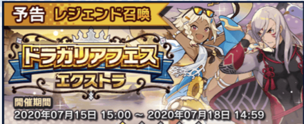 | ドラガリアフェス エクストラ 【マーズ、クラウ(ドラフェスVer)PU】 | 2020-07-15 | 2020-07-18 | 選択 |